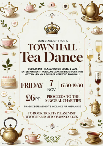 JOIN STARLIGHT FOR A TEA DANCE AT HEREFORD TOWN HALL FRI 7TH NOV 530-730PM FOOD, DRINK & ENTERTAINMENT FOR ALL THE FAMILY